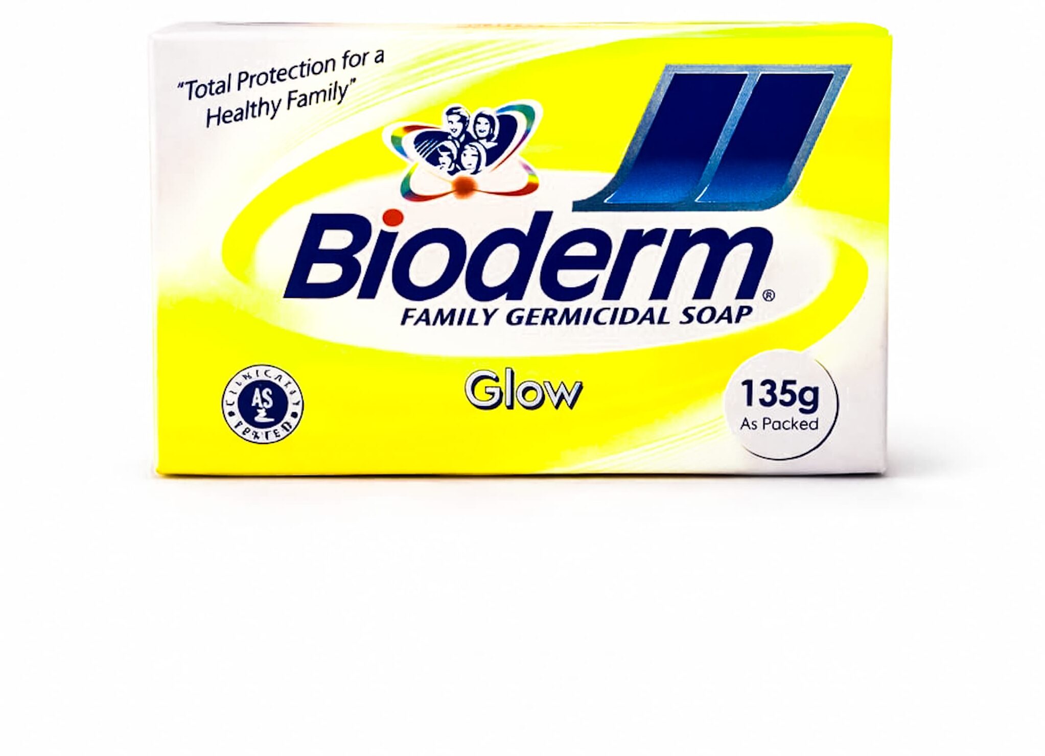 Bioderm Glow Soap offers powerful germicidal action, killing 99.9% of germs and providing up to 24-hour protection against those that can cause illness and body odor. The soap contains an active ingredient with a gentle, non-drying formula designed to keep the skin feeling fresh and healthy. It provides a fresh floral fragrance, making it a pleasant addition to a daily hygiene routine. It is effective in managing common skin issues like acne, pimples, and ringworms. Its formulation helps to remove dead skin, which in turn can lighten dark spots and acne marks, promoting a more even and radiant skin tone.