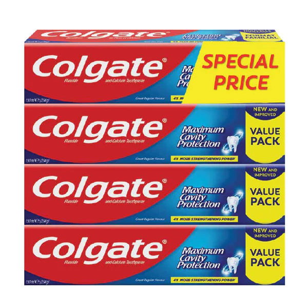 Colgate 4 x 150ml multipacks are bulk “Value Packs” designed for comprehensive family oral care.