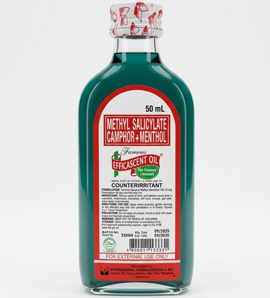A versatile medicated liniment used to provide fast relief for various body pains and tensions. It is a trusted household product, especially in Filipino communities, known for its deep-penetrating heat and soothing sensation.