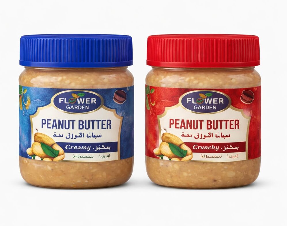 The Flower Garden Peanut Butter Assorted 2x340gm pack is a combo offer containing one jar of creamy and one jar of crunchy peanut butter, made with premium roasted peanuts.