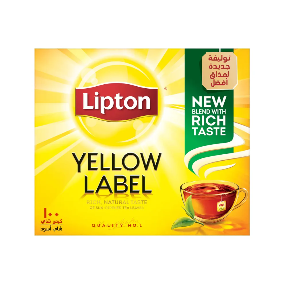 Lipton Yellow Label is a premium black tea blend crafted for over 100 years. The 100-bag pack features tea bags made from high-quality leaves.