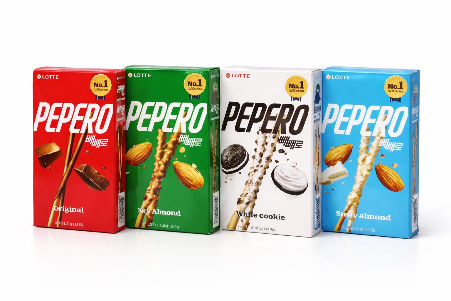 A multipack of South Korea’s popular biscuit sticks, featuring a variety of chocolate coatings and textures.