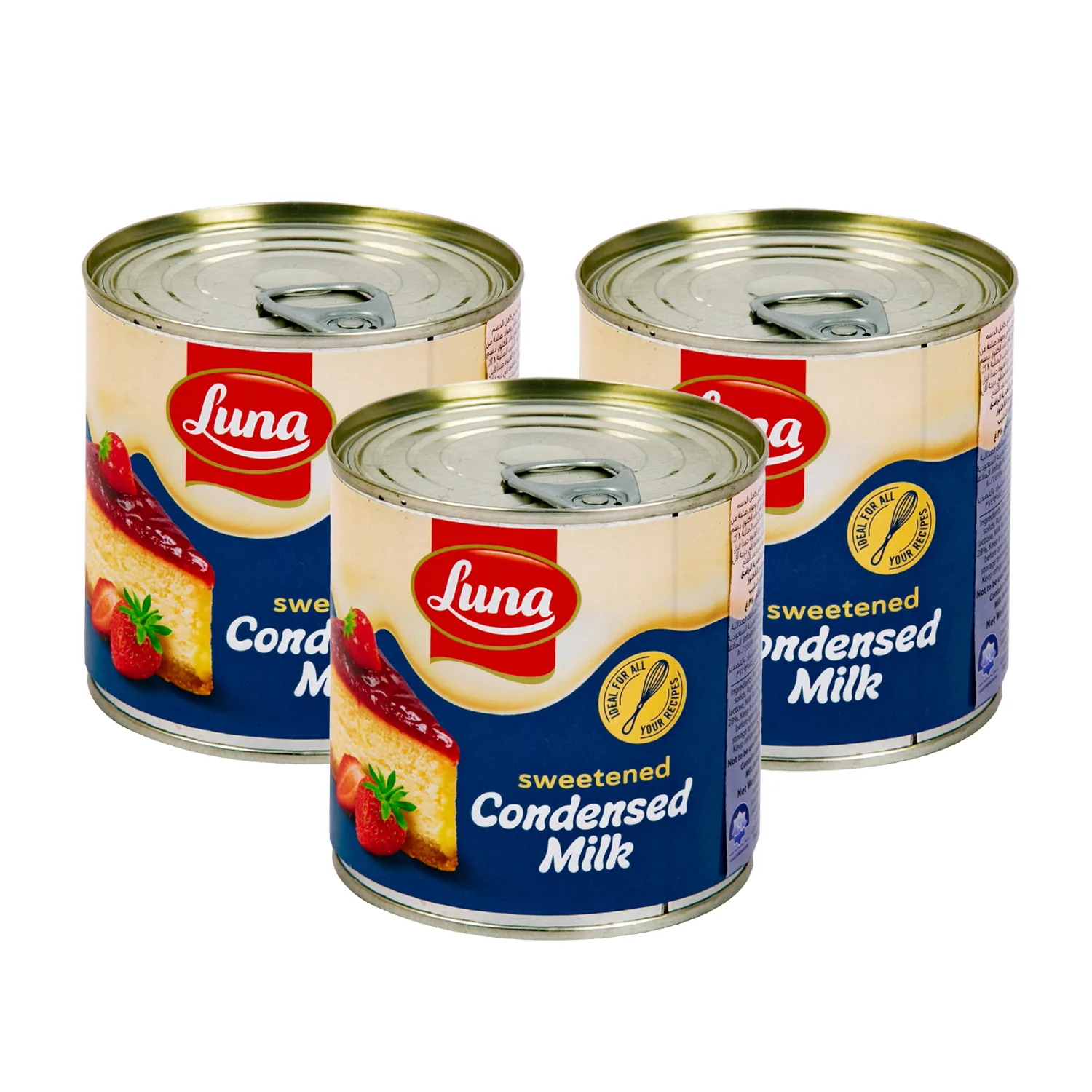 The pack of three Luna Sweetened Condensed Milk cans is a value offer that provides a total of 1185g of product across three individual 395g cans.