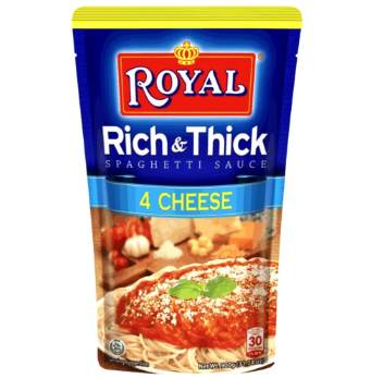 Indulge in the luxurious and creamy taste of Royal Rich & Thick 4 Cheese Spaghetti Sauce. This 900g jar combines the rich, savory flavors of four premium cheeses – Parmesan, Cheddar, Mozzarella, and Romano – to create a velvety smooth sauce that elevates any pasta dish. Perfectly balanced for lovers of cheesy pasta, this sauce is ideal for preparing spaghetti, lasagna, or baked pasta that’s sure to impress your family and guests.