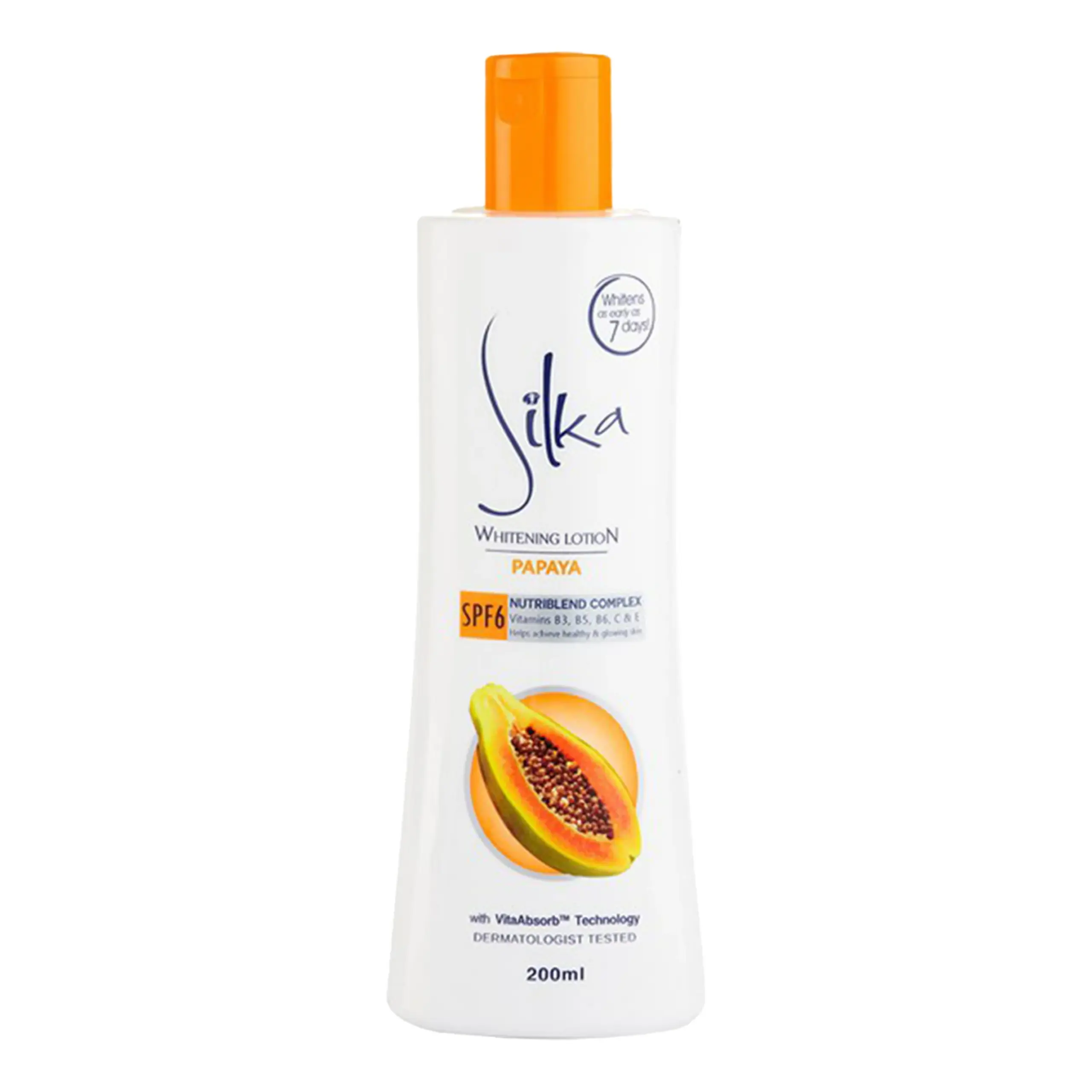 A skin-whitening and moisturizing body lotion that combines natural papaya enzymes and a Nutriblend complex of five essential vitamins to lighten skin tone, remove dead skin cells, and provide deep hydration and sun protection.