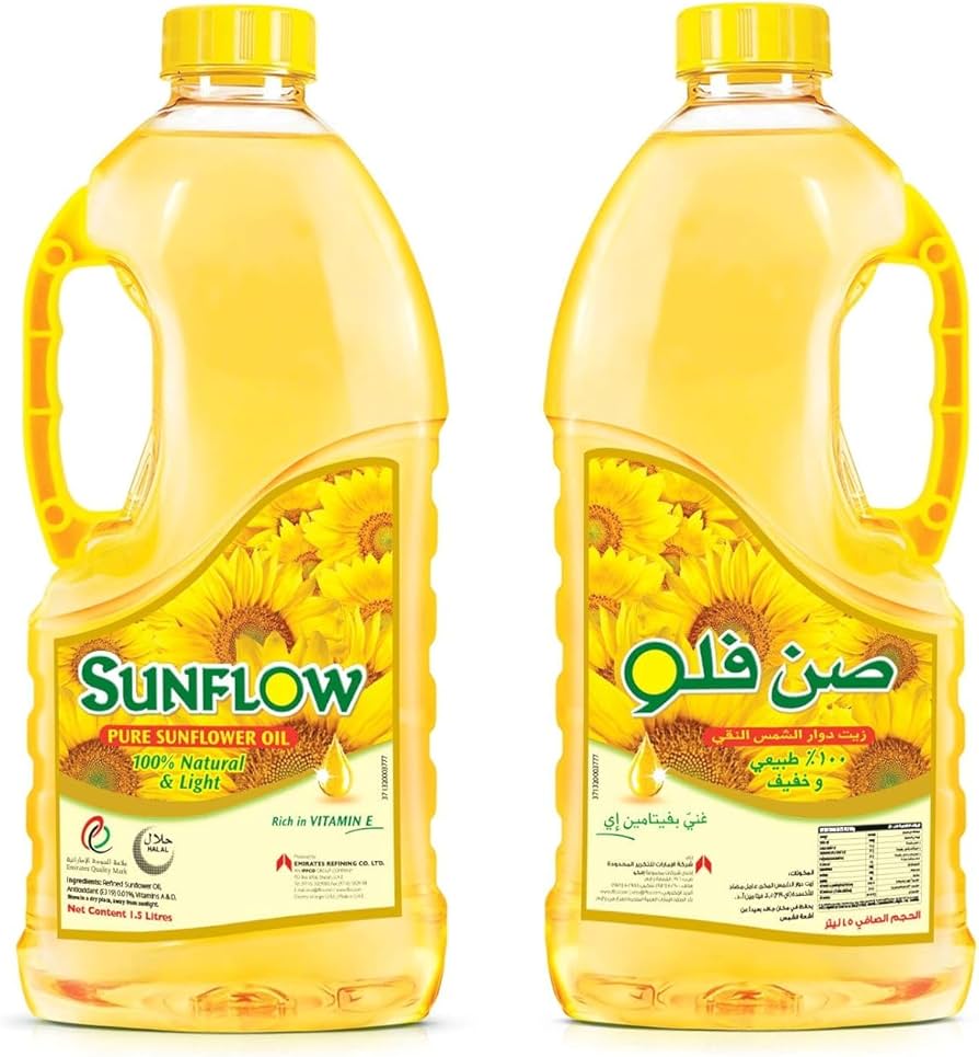 The oil is made from 100% refined sunflower oil, and is fortified with Vitamins A and D3. It has a light texture and is completely odourless, which allows the natural flavours and aroma of your food to be the focus. The pack contains two individual bottles, each with a net content of 1.5 literes of refined sunflower oil, for a total of 3 litres.